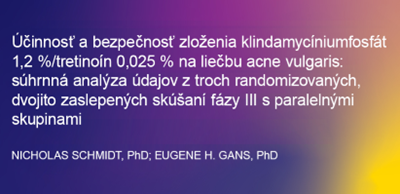 - Účinnosť a bezpečnosť zloženia klindamycínium-fosfát 1,2 %/tretinoín 0,025 % na liečbu acne vulgaris: súhrnná analýza údajov z troch randomizovaných, dvojito zaslepených skúšaní fázy III s paralelnými skupinami