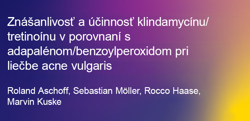 - Znášanlivosť a účinnosť klindamycínu/tretinoínu v porovnaní s adapalénom/benzoylperoxidom pri liečbe acne vulgaris.