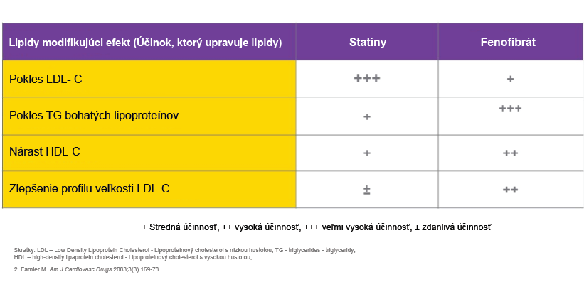 Inhibítor reduktázy hydroxymetylglutaryl-koenzýmu A (HMG-CoA), (statín) a deriváty kyseliny fibrovej (fibráty), sú dve hlavné skupiny liekov, ktoré znižujú hodnoty lipidov v krvi. Ak sa používajú v kombinácii, pôsobia synergicky, aby mali komplementárne účinky na lipidové parametre, na zlepšenie lipidového profilu u pacientov s kombinovanou hyperlipidémiou, najmä u pacientov s diabetes mellitus 2. typu alebo s metabolickým syndrómom, ktorí nevykazujú adekvátnu odpoveď na monoterapiu statínom alebo fibrátom. 2