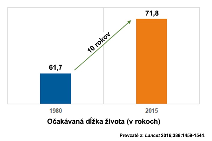 Obrázok 5: Zvýšenie očakávanej dĺžky života od roku 19803,4
