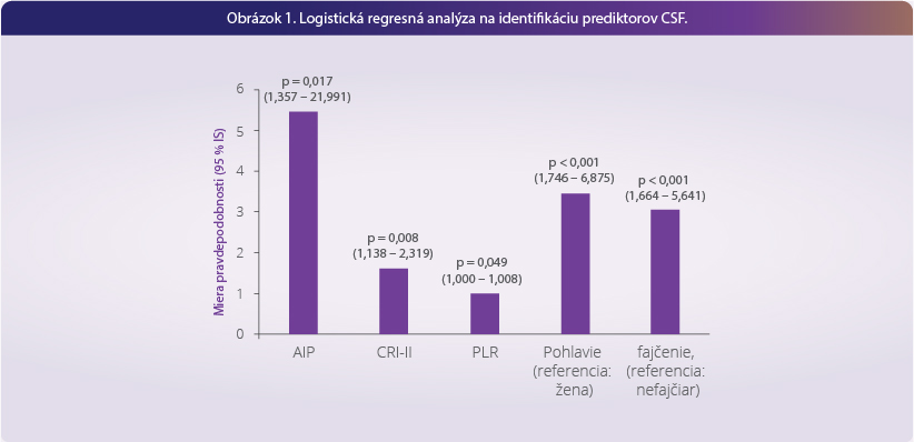 - Zistilo sa, že aterogénne indexy, ako je aterogénny index plazmy (AIP), Castelliho rizikový index II (CRI-II), súčasné fajčenie a mužské pohlavie, sú nezávislými rizikovými faktormi pre CSF (Obrázok 1).