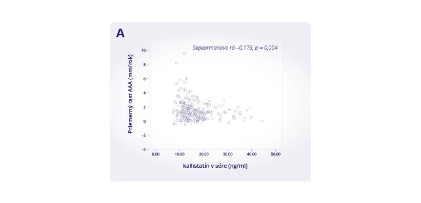 Vývoj AAA bol inhibovaný v myších modeloch s infúziou fosforečnanu vápenatého (CaPO4) a subkutánneho angiotenzínu II (AngII) transgénnou nadmernou expresiou ľudského génu KAL (KSTg) alebo podávaním rekombinantného ľudského KAL (rhKAL). Vzorky krvi u 956 mužov vo veku nad 65 rokov s rizikovými faktormi pre AAA ukázali negatívnu súvislosť medzi hladinou KAL v sére a AAA diagnózou a rastom [Spearmanovo rho (Spearman correlation) -0,173, p = 0,004; Obrázok A].